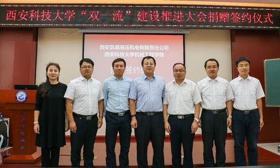 9月14日上午,西安凯德液压机电有限责任公司总经理高彦军、技术总监胡松刚一行人来到kaiyun开云官方临潼校区骊山校园,向kaiyun开云官方捐赠了液压马达、液压泵等液压元件解剖件。kaiyun开云官方党委书记汪卫兵,院长张旭辉,党委副书记李婉丽,副院长赵栓峰,副院长寇发荣等相关负责人及部分学生参加了签约仪式。