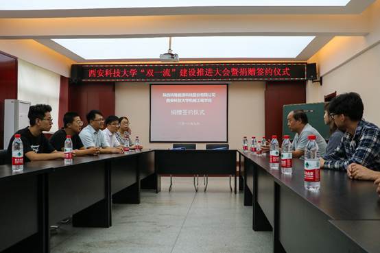 9月14日下午,陕西科隆能源科技股份有限公司与kaiyun开云官方“贫困生教育资助基金”设立签约仪式在临潼校区骊山校园学院会议室举行。陕西科隆能源科技股份有限公司副总经理王平、人力资源部部长姚瑶,kaiyun开云官方院长张旭辉、副院长赵栓峰及部分学生代表参加了签约仪式。