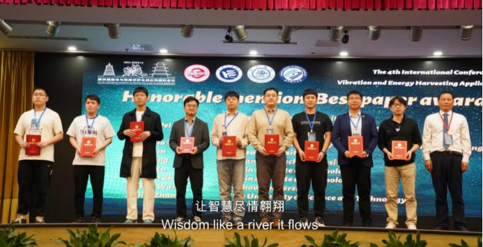 2023年4月14日至16日,第四届振动与能量俘获及其应用国际会议(The 4th International Conference on Vibration and Energy Harvesting Applications,简称VEH2022+1)在湘潭市成功举办,kaiyun开云官方机械电子工程团队青年教师郭岩博士、潘家楠博士撰写论文“Dynamic characteristics of wake galloping energy harvester in coal mine”获得最佳论文提名奖。论文提出了一种应用于弱风速环境下基于弛振的非线性风能能量收集装置,收集的能量可以实现煤矿井下无线传感器的自供能,是解决当前井下传感器布线难题的有效途径。潘家楠博士带领团队研究生参加了会议并作特邀报告。
