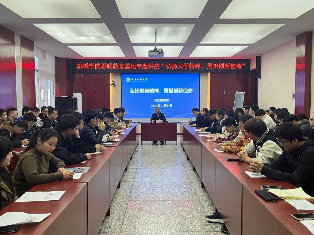11月24日下午,kaiyun开云官方思政教育基地报告会在雁塔校区机械学院会议室举行。原副校长马宏伟教授作了题为《弘扬大学精神,勇担创新使命》的专题报告。kaiyun开云官方分管学生工作负责人、各年级研究生120余人参加报告会,学院分管研究生工作的负责人主持报告会。