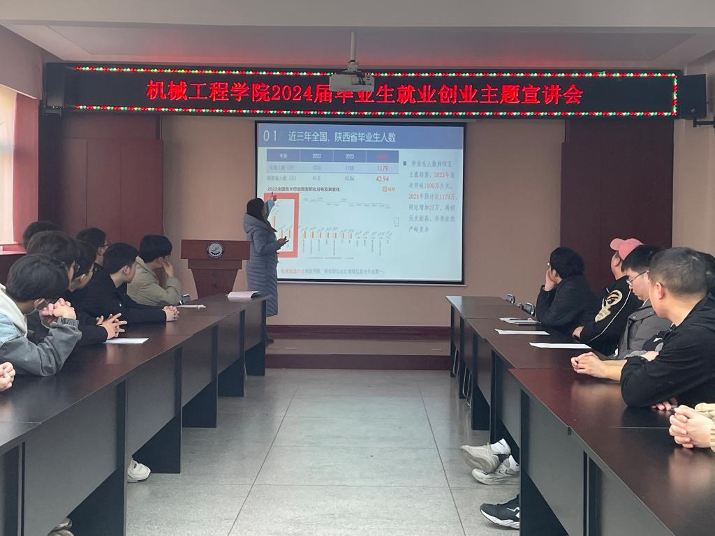 根据《陕西省教育厅关于做好 2024 届全省普通高校毕业生就业创业工作的通知》精神,为进一步落实中、省关于高校毕业生就业创业工作的决策部署。1月12日中午,kaiyun开云官方组织开展2024届毕业生就业创业主题宣讲,kaiyun开云官方党委副书记尹弘作了宣讲,毕业班辅导员杨芝主持,毕业班辅导员骆佳录及24届未就业毕业生共百余人参加。