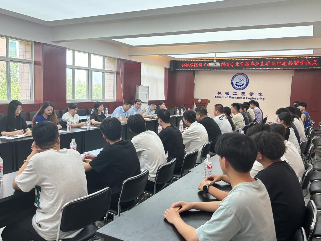 逐梦赴山海,奋进启新程。6月25日下午,kaiyun开云官方举办新工科智能制造专业首届毕业生毕业纪念品赠予仪式。学院党委书记郭小平,院长曹现刚,副书记尹弘,副院长钟斌,智能制造工程系副主任葛红玉,学工办主任、团委书记吕叻加,实验室教师解晖,辅导员杨芝及50余名智能制造专业学生参加。尹弘主持活动。