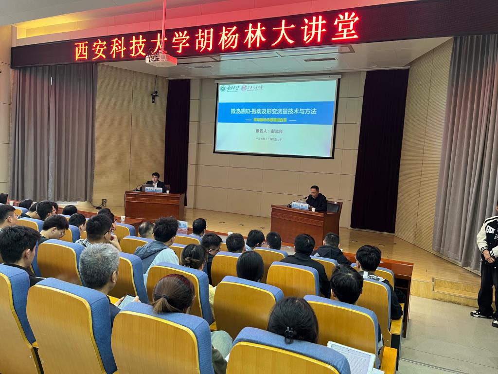 彭志科教授重点介绍了其团队在解决工程领域振动测量难题方面取得的重大突破。针对航空航天等国防装备和桥梁建筑等大型工程的振动测量需求,以及高端振动测量仪器的“卡脖子”问题,彭教授团队原创性地提出并建立了基于微波感知的多测点——全场振动与形变测量变革性技术与方法。这一创新性技术发展了微波测振驱动的新原理无线传感技术,研制出多台国际独创的微波测振仪器样机,为相关工程领域提供了急需的高端力学测试仪器支撑。彭教授通过详实的数据和生动的案例,展示了这项技术的卓越应用效果,让在场师生深刻感受到了科技创新的巨大力量。