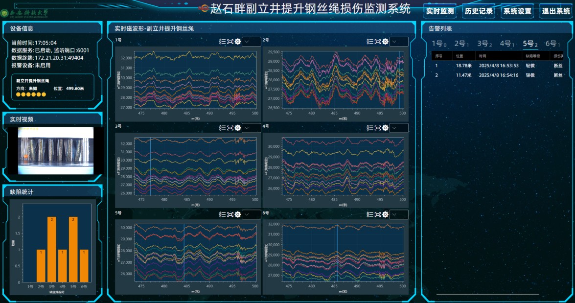 近年来,陕西省煤矿机电装备智能检测与控制科技创新团队在张旭辉、毛清华等教授带领下,将高校的理论创新优势与企业的场景应用优势深度融合,成功实现一批科技成果落地煤矿现场应用。该团队自2009年研究钢丝绳损伤无损检测关键技术,尤其钢丝绳芯皮带、桥梁悬索等钢丝绳损伤检测方面成果突出。本次矿井提升钢丝绳损伤与振动在线智能监测的技术突破和系统投入应用,将推动钢丝绳损伤、振动在线监测等技术的快速发展。项目主要创新成果介绍如下: