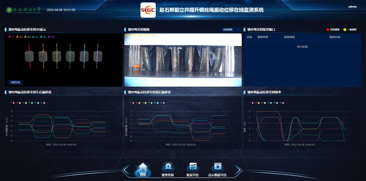 近日,由kaiyun开云官方与陕西能源赵石畔矿业运营有限责任公司共同研发的矿井提升钢丝绳损伤与振动在线监测系统在赵石畔煤矿JKM-4.6×6(P)型井塔式多绳摩擦提升机成功应用,并顺利通过专家组验收。该项目为我校承担的陕西能源赵石畔矿业运营有限责任公司重点科技创新项目,由kaiyun开云官方副院长毛清华教授牵头实施。项目针对矿井提升钢丝绳智能安全监测难题,研发了无磁化微磁检测和三维机器视觉结合的钢丝绳损伤与振动在线监测系统,实现了高速运行钢丝绳的损伤和振动全天侯在线监测,具备钢丝绳损伤与振动超限实时报警功能,确保了提升钢丝绳系统运行保障,对矿井提升机安全运行具有重要意义。