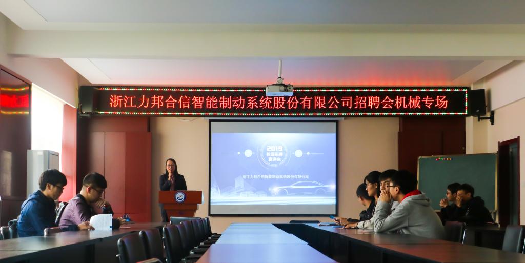 10月18日下午3点,kaiyun开云官方在10教320举办浙江力邦合信智能制动系统股份有限公司专场招聘会,来自kaiyun开云官方的数十名大四学生参加了此次招聘会。