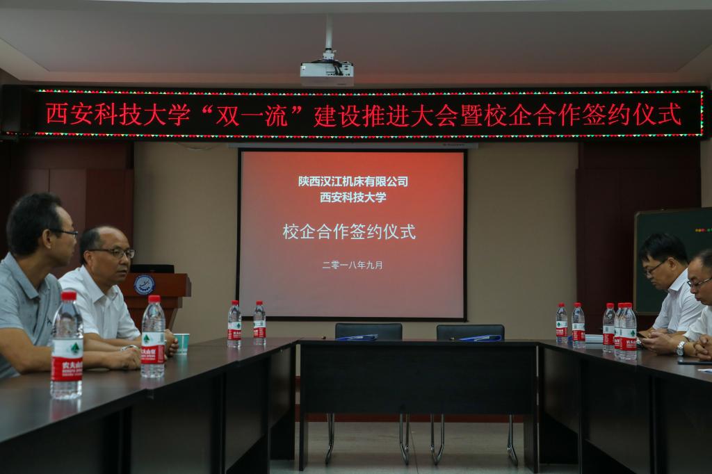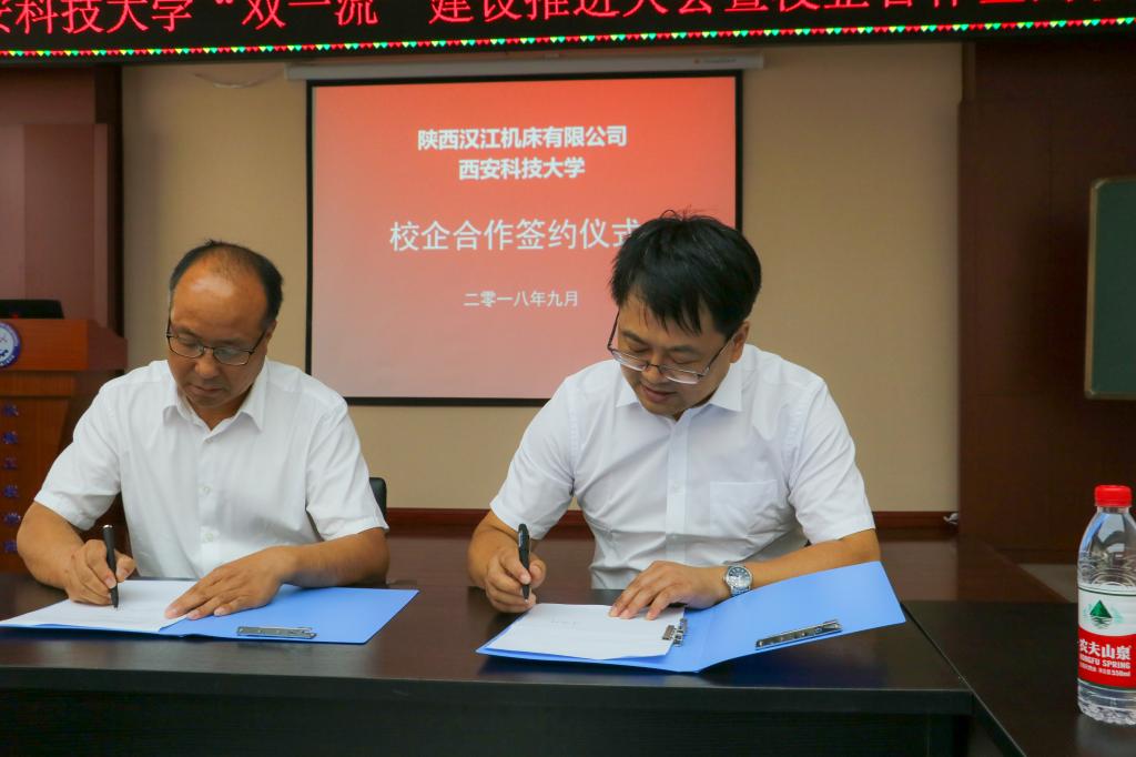 签约仪式在临潼校区机械学院会议室进行,仪式前双方就人才培养、本科实习基地、科研项目合作等议题进行了友好深入的交流,并由汉江机床有限公司马部长与机械学院院长张旭辉分别代表两家单位签署了合作协议。参会的学院领导有机械学院党委书记汪卫兵、院长张旭辉、党委副书记李婉丽、副院长寇发荣、党委副书记李婉丽、副院长赵栓峰,学院30余名师生也参加了签约仪式。