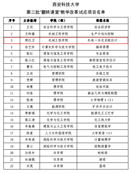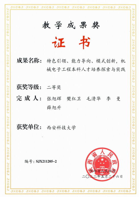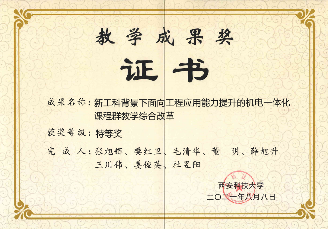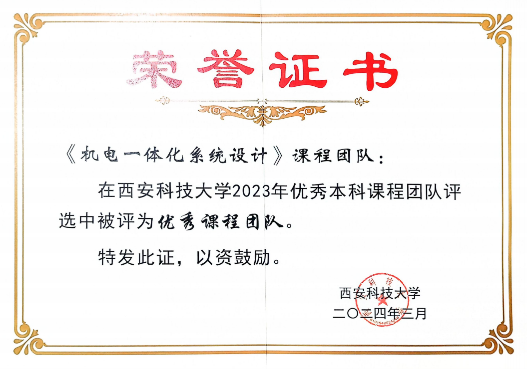 kaiyun开云官方《机电一体化系统设计》课程组在张旭辉教授、樊红卫副教授带领下,坚持为党育人,为国育才,立德树人根本宗旨,从教材编写到课程建设,开展了全方位的教育教学改革,入选了陕西省一流课程,支撑了机械电子工程专业入选国家级一流专业建设点。主要建设成果如下: