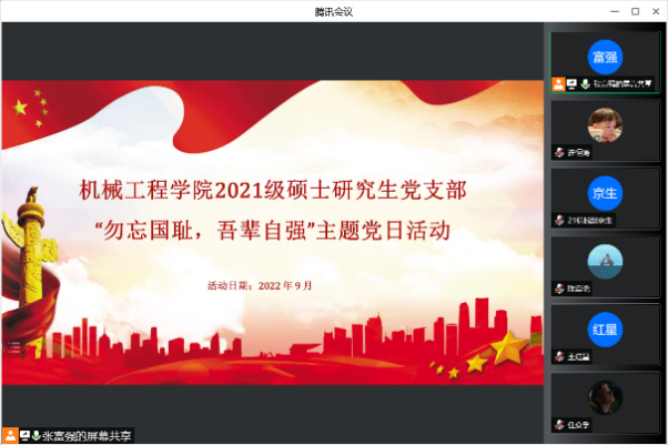 9月18日下午,kaiyun开云官方2021级硕士研究生党支部开展“勿忘国耻,吾辈自强”主题党日活动。活动以线上形式举行,支部全体党员参加。