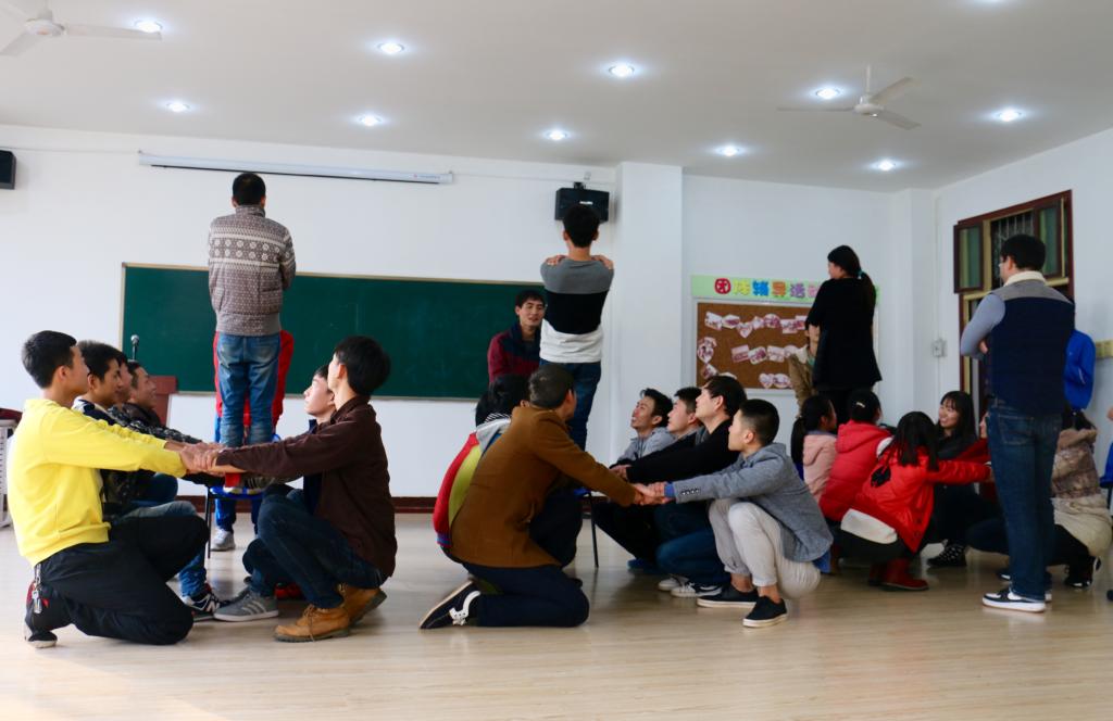 活动开始,靳伟涛老师介绍了本次活动的项目及规则,活动内容丰富多彩,以游戏为主。"服务他人"、“打招呼”、“人形波浪”、“心有千千结”、"冲出包围圈"、"信任背摔"等有趣的游戏不仅让同学们在欢声笑语中体验到了活动的乐趣,而且深刻地理解了团结协作的重要性。最后,同学们分享了内心的愿望和感悟,多数同学都表示,若想在游戏中取得最后的成功,团结协作是必不可少的,只有大家心往一处想,劲儿往一处使,朝着共同的目标努力,才能实现愿望。