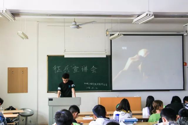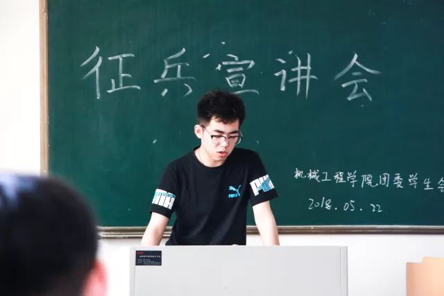为贯彻落实国务院、中央军委征兵工作有关文件精神,进一步完善高校学生参军入伍优惠政策,鼓励更多高素质高校学生参军入伍。5月22日中午12:30,机械学院在10教505教室举行了2018年“征兵宣讲会”,各年级有意向入伍的学生代表共同参加了本次宣讲会。