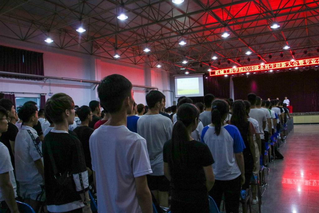 接下来,机卓二班新生代表席杰同学在会议中发言,他表达了发愤图强,积极进取,努力学习的自信,并代表18级新生表达了用良好乐观的心态面对大学生活的决心。