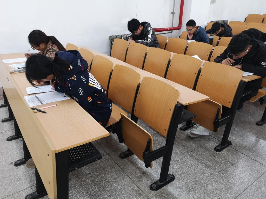 这次考试完全模拟正式考试的流程,学生在有人监考,杜绝手机的环境下,训练自己的答题能力。考试内容包括听力、阅读、写作、翻译四种题型。考试考风严正,纪律严明。考试过程中,学生们全神贯注,埋头做题,考场气氛严肃。