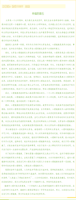心理品质是大学生全面发展的基本要求,拥有一个健康的心理状态对大学生活至关重要。以“心相遇、爱同行——心理健康教育伴我成长”为主题的心理健康征文活动自开始以来收到广大同学的积极投稿。经过激烈角逐,比赛已落下帷幕,共有15名同学获得一二等奖,获奖名单及优秀作品如下: