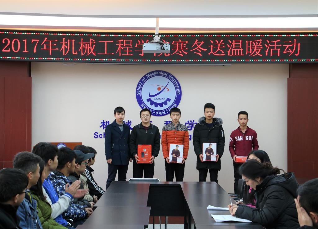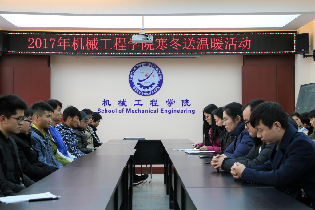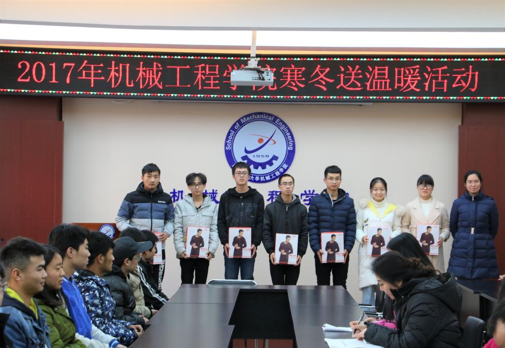 2017年12月18日,为切实解决家庭经济困难的学生寒冬御寒问题,关心和帮助经济困难同学,为他们送去温暖,kaiyun开云官方在十教320会议室举行了寒冬送温暖活动。kaiyun开云官方党委副书记李婉丽老师、各级辅导员老师及受助学生共同参加了此次活动。