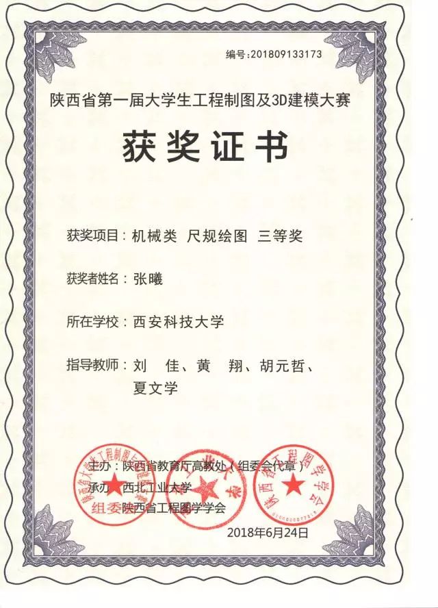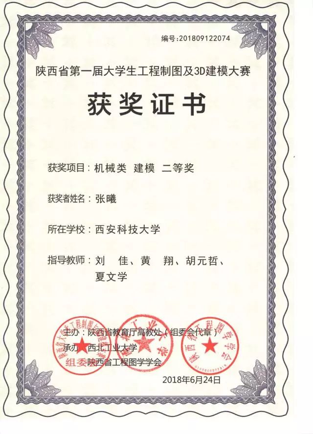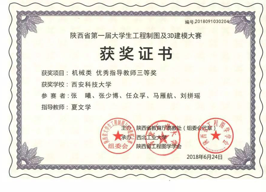 本次大赛是经陕西省教育厅高教处批准,陕西省大学生工程制图及3D建模大赛组委会主办的大学生学科竞赛,目的在于引导高校培养大学生的工程实践能力、综合设计能力、创新意识和团队协作精神,为优秀人才脱颖而出创造条件。本次大赛共有40多所高校的560多名大学生参加。