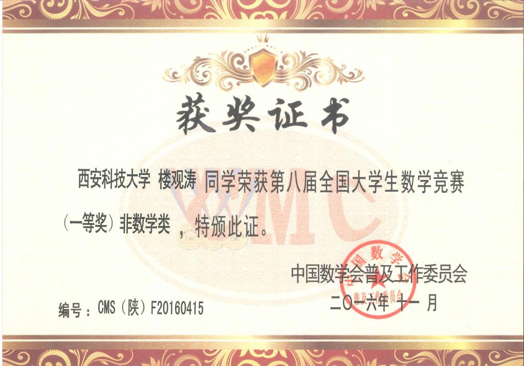 热烈祝贺kaiyun开云官方24名学子荣获第八届全国大学生数学竞赛大奖。其中楼观涛等8人获得一等奖,师振等3人获得二等奖,张力力等13人获得三等奖。祝贺他们取得佳绩,为机械学院学院争得荣誉。