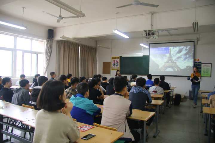 本次主讲的老师用自幽默风趣的教学风格带着同学们去了解多种外语的魅力,通过ppt上的图片让大家欣赏其他国家的美丽风景,引起了大家学习外语的强烈兴趣。老师也一直和同学们保持互动,让大家对外语的兴趣不断提升。