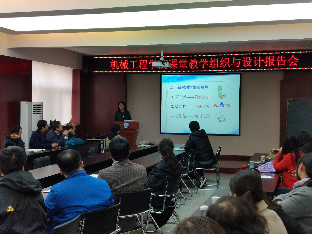 11月7日下午,机械学院在骊山校园学院会议室举行课堂教学组织与设计报告会,邀请了陕西省教学名师、陕西省优秀教师、陕西省“建功立业巾帼标兵”李曼教授作了课堂教学组织与设计的专题报告。学院教师60余人聆听了报告。